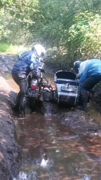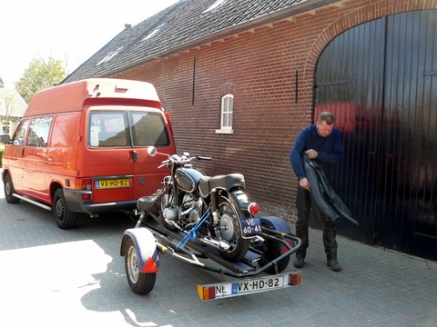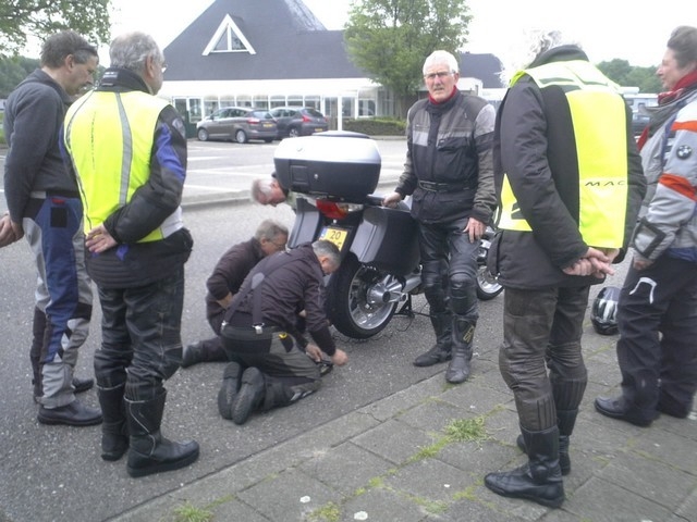 Even na de pauze werd de hulp ingeroepen van de bezemwagen en werd de motor van Peter op de aanhanger naar Oirschot gebracht.
