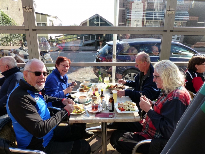 Op zaterdag 26 maart is met mooi weer een leuke zandweggetjesrit gereden. Vooraf koffie met Paasstol (met dank aan Jan Willem / Monique?) en onderweg gezellig bij (oudleden) Thieu en