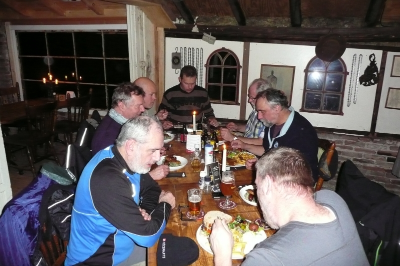 Na een wat aarzelende start, werd dit een leuke rit met af en toe een stukje off-road-by-night. Ook het restaurant in Bels, dat speciaal voor deze rit open was, viel