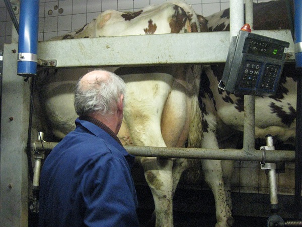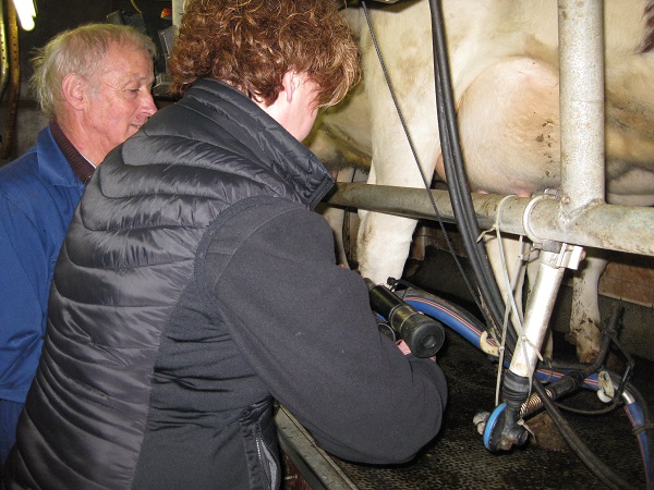 Rond 6 uur zijn we wederom naar buurman Gerrit gegaan om het koeien melken van dichtbij te bekijken en zelf ook eens te proberen.