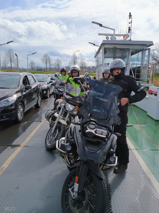 Voorjaarsrit 23 maart, foto Fons, met 10 motoren over de maas.